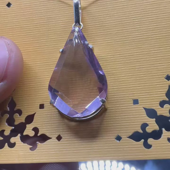 AAA Amethyst Faceted Tear Drop 950 Silver Pendant