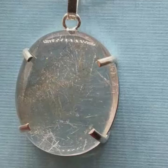 Blue Tourmaline Rutile In Quartz 950 Silver Pendant