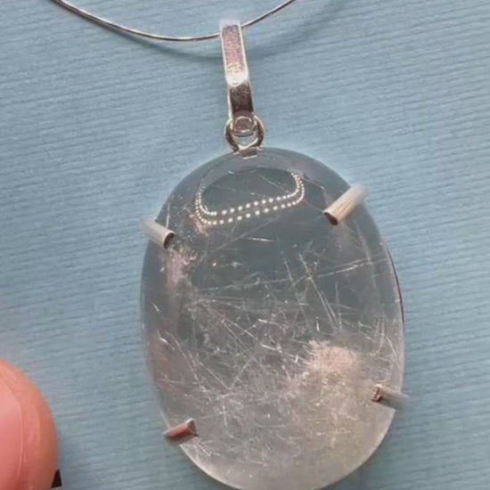 Blue Tourmaline Rutile In Quartz 950 Silver Pendant