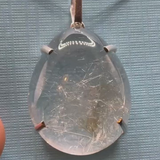 Blue Tourmaline Rutile In Quartz 950 Silver Pendant