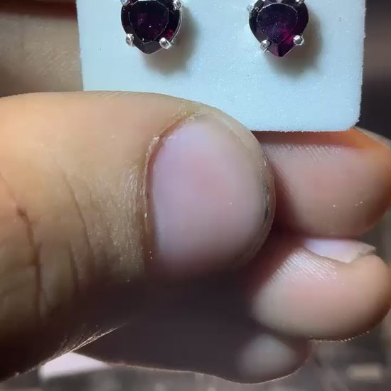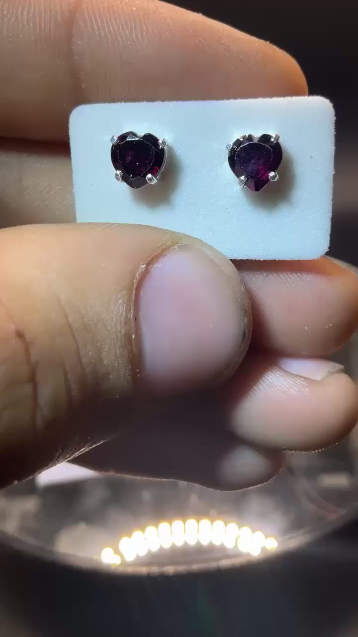 Garnet Gemstone Faceted Heart B 925 Silver Earrings