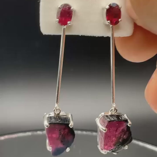 Gemstone Watermelon Tourmaline With Slice Dangle 950 Silver Earrings