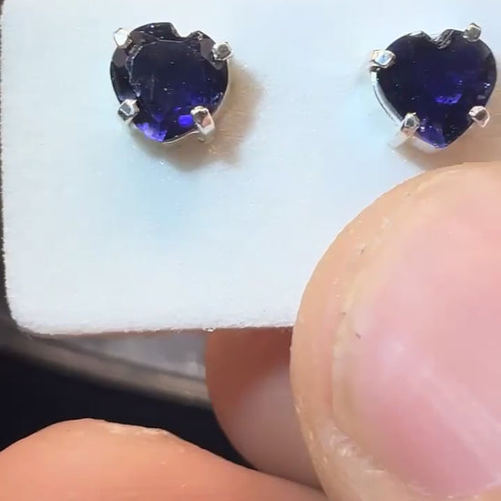Iolite Gemstone Faceted Heart 925 Silver Earrings