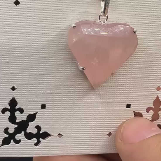 Rose Quartz Faceted Heart 950 Silver Pendant
